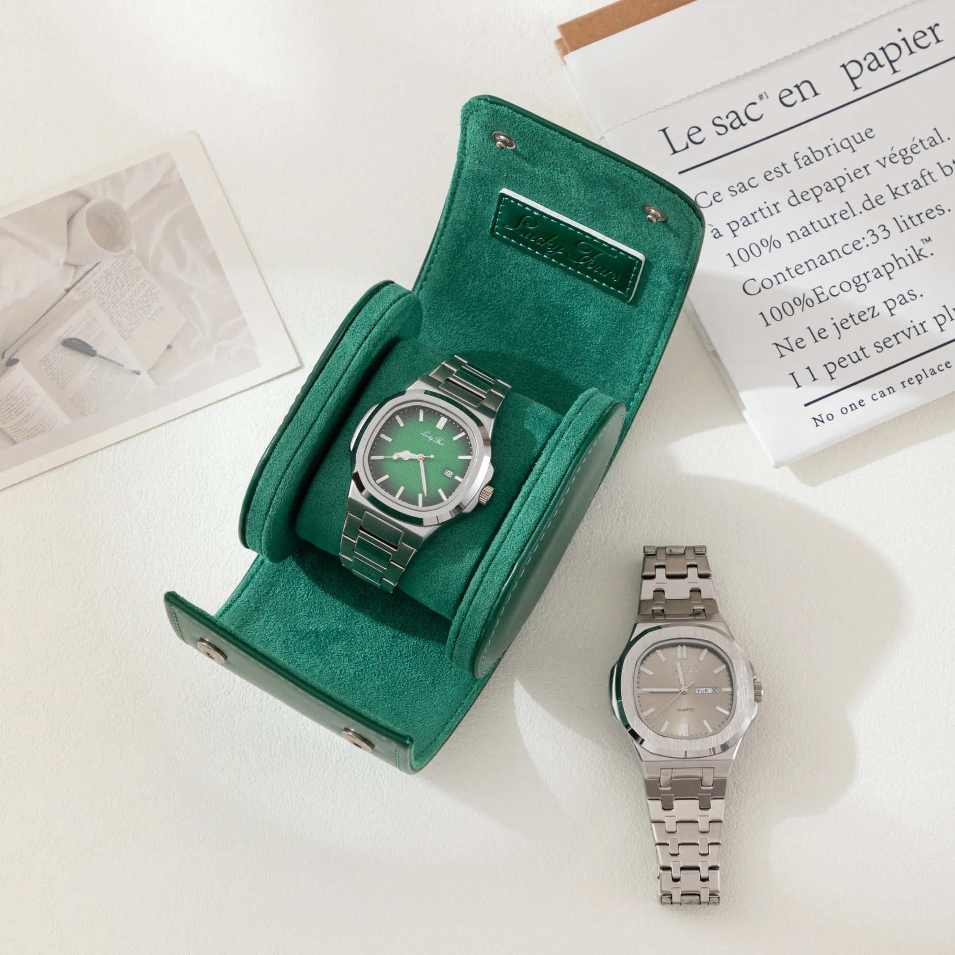 Guarda tu reloj con estilo y elegancia.